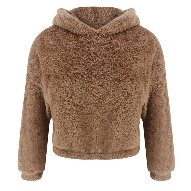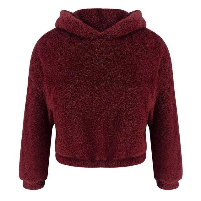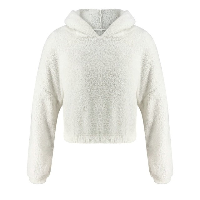 Crop Top Sweatshirt Women Casual Winter Warm Hoodies