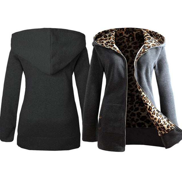 Women Hoodie Coat Plus Velvet Thickened Hooded Leopard Printed hoodie
